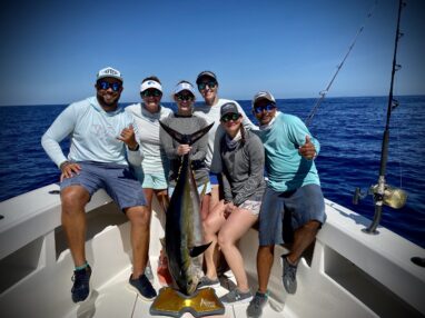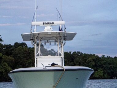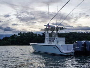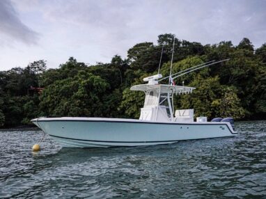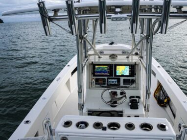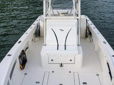 Our 32 Sea Vee is powered by twin yamhahas 300 HP, Twin SIMRAD Evo3 GPS, Radar, & Sonar, 50 gal circulating Live well, 2 set of Tuna Tubes, outriggers, big open bow area for casting and JL Audio sound system for entertainment.